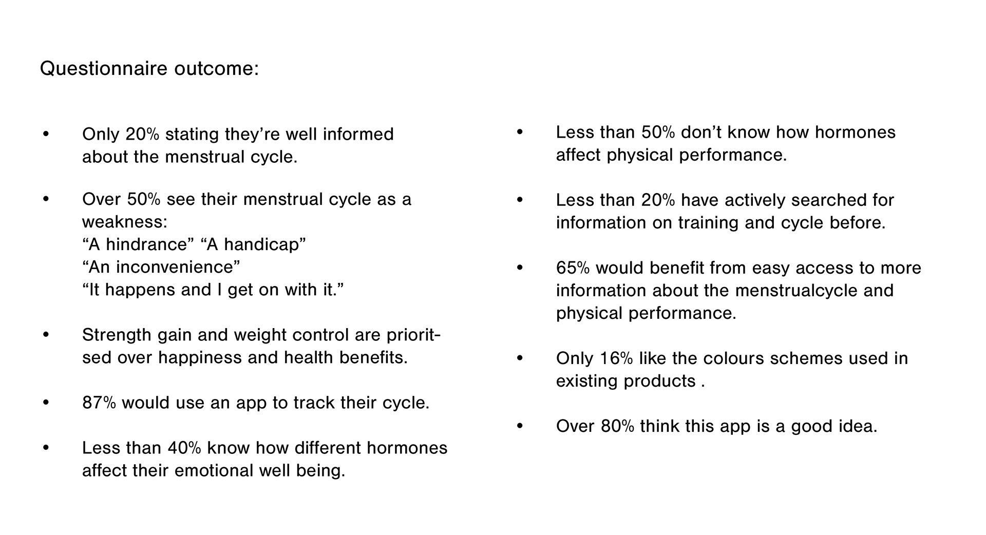 This project builds on years of research in women’s health and my experience coaching female athletes. I recognised a need to centralise and share knowledge on how the menstrual cycle impacts physical and mental well-being. Many cycle-tracking apps are expensive, collect private performance data and focus primarily on fertility or birth control management. These apps often exclude younger users who are seeking free information on lifestyle, nutrition and exercise.